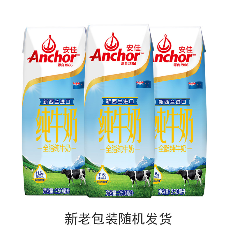 安佳(Anchor)全脂纯牛奶 250ml*24盒/整箱 新西兰进口