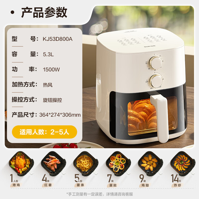 苏泊尔(SUPOR)可视空气炸锅蒸汽嫩炸5L大容量免抽拉免翻面新款不粘电炸锅